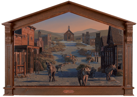 Inspired by the zoological motifs in the Book of Isaiah, this body of work explores wild animals inhabiting abandoned spaces. The theme of nature's reclamation is presented through meticulously crafted, shaped oil paintings. Tiessen's style of Narrative Hyper-surrealism in the New Contemporary movement lends itself to the spiritual and environmental messages he wishes to convey. Streams in the Wasteland was unveiled to the public at Tiessen's debut U.S. solo exhibition at Jonathan LeVine Projects (Jersey City, NJ) in May 2019 and Streams in the Wasteland II was exhibited at Corey Helford Gallery (Los Angeles, CA) from December 2019 - January 2020. The Streams in the Wasteland monograph book is now available.